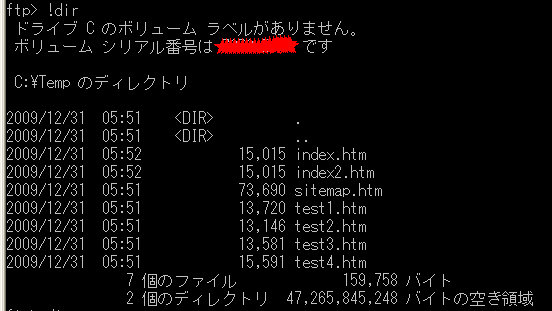 | FTPコマンド[MS-DOS] | |||||